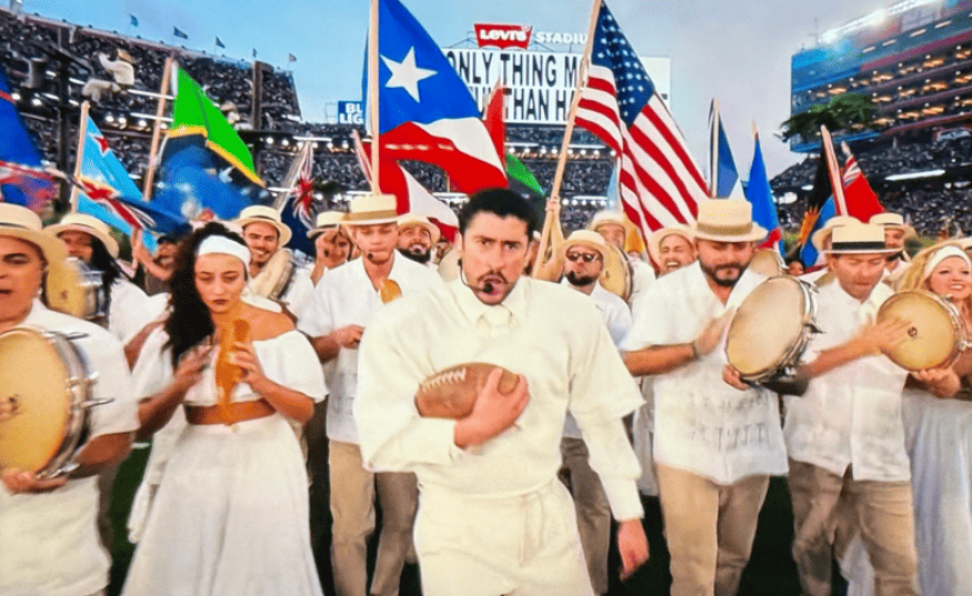 A performance durou cerca de 13 minutos e foi realizada quase inteiramente em espanhol. Construída como uma narrativa, apresentou cenas do cotidiano latino, estética caribenha, coreografias populares, referências à crise energética em Porto Rico, à migração e à vida nas periferias. Foram ao Super Bowl imagens que raramente ocupam esse espaço e que Trump insiste em ridicularizar e menosprezar, vendedores de rua, casas simples, festas comunitárias.