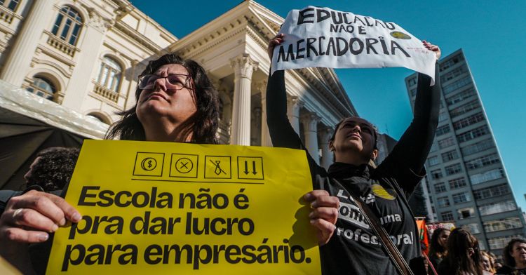 Na educação, por exemplo, quando grupos empresariais passam a usar a escola pública para alavancar seus lucros, a tendência é esgotar as forças físicas e emocionais da classe trabalhadora. Embora seja necessário superar a sociedade capitalista, como medida urgente, é preciso combater e exigir a revogação dos programas Parceiros da Escola e de escolas cívico-militares, denunciando à classe trabalhadora seus efeitos nefastos para a educação.